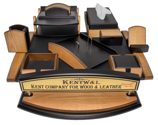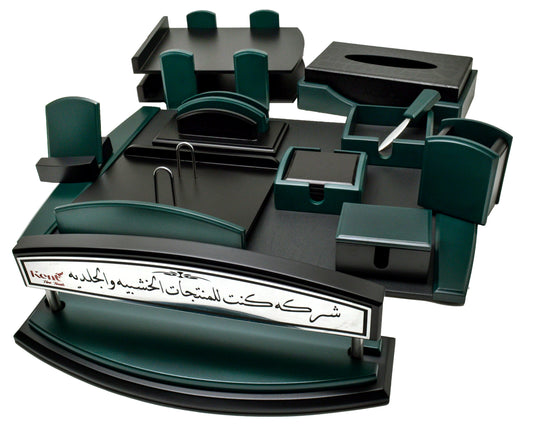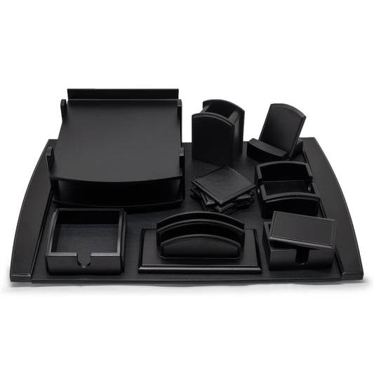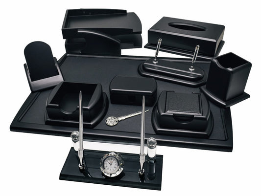 طقم مكتب لييندا (أسود) - 13 قطعة مع حامل اسم/نيم تاج