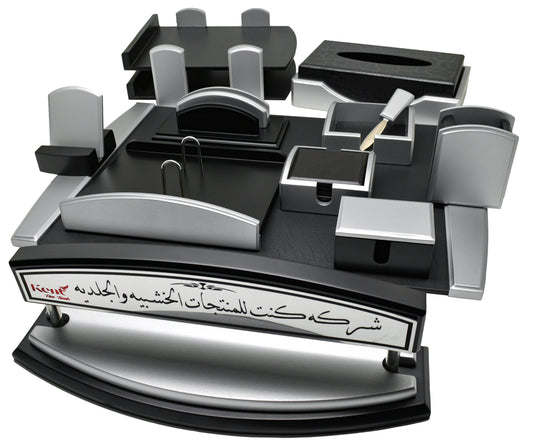 طقم مكتب ريفينادو (اسود) 12 قطعة مع حامل اسم/نيم تاج