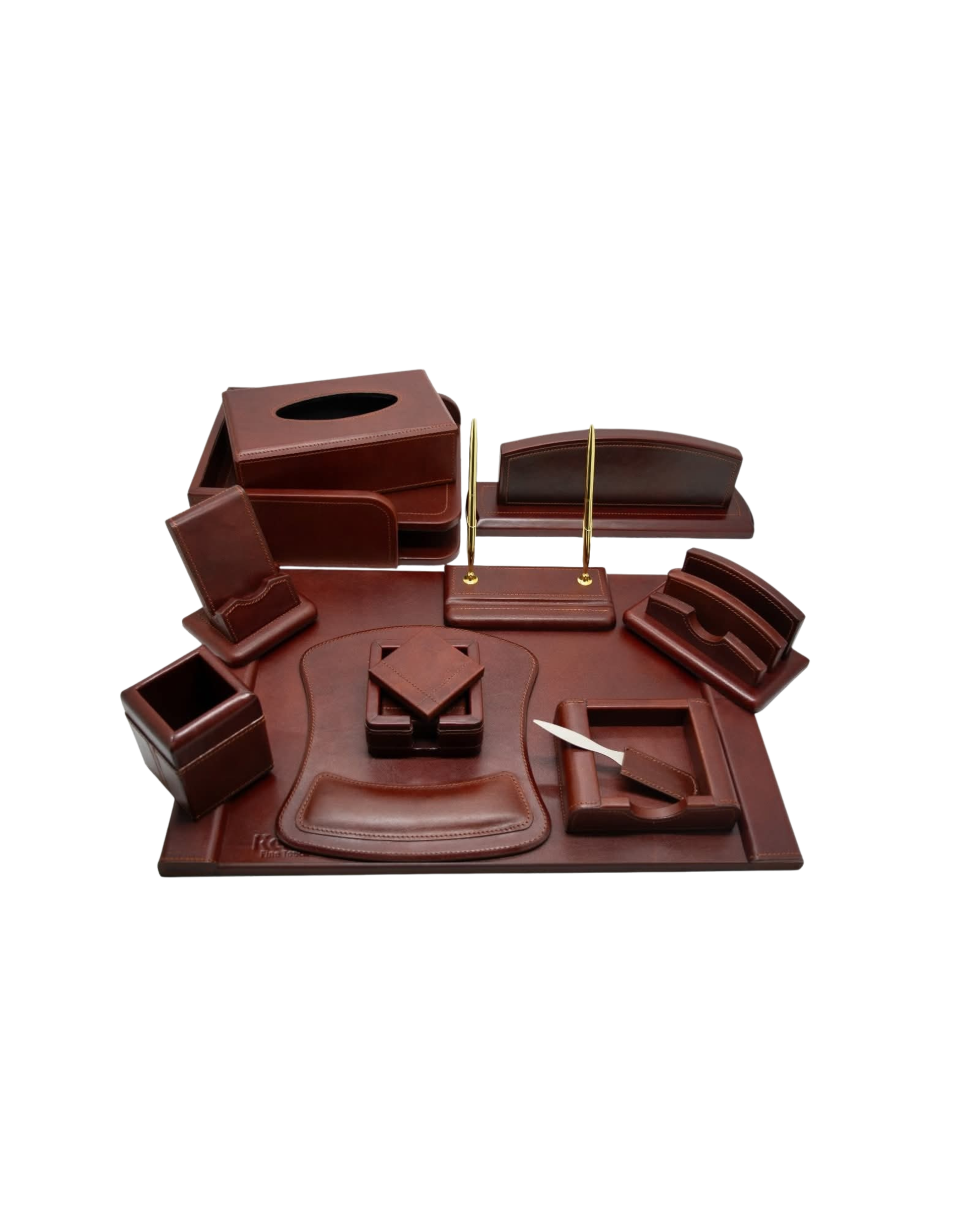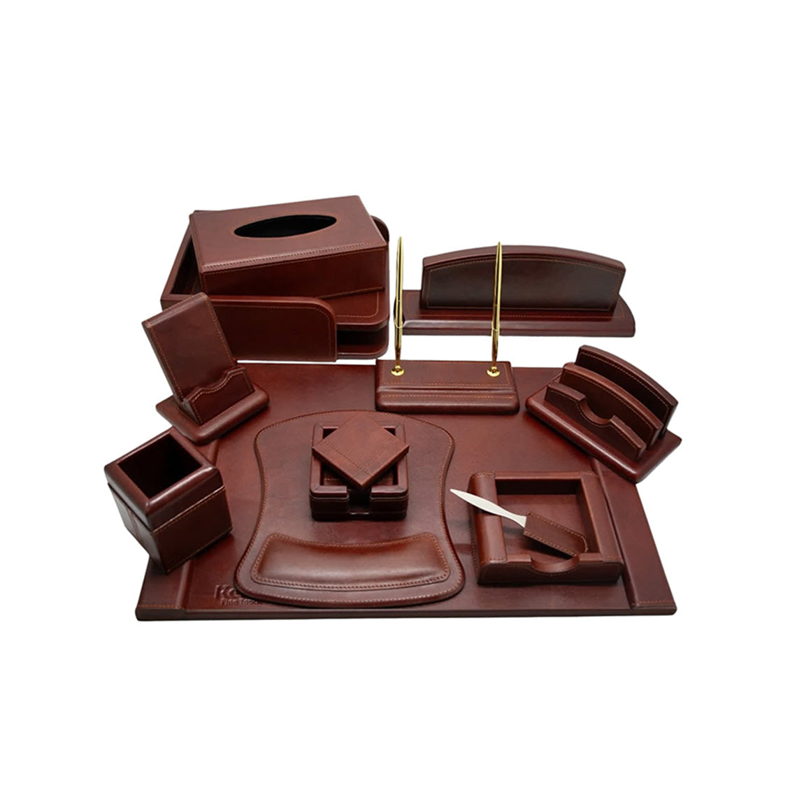 طقم مكتب بيلي - جلد طبيعي - بني - 14 قطعة