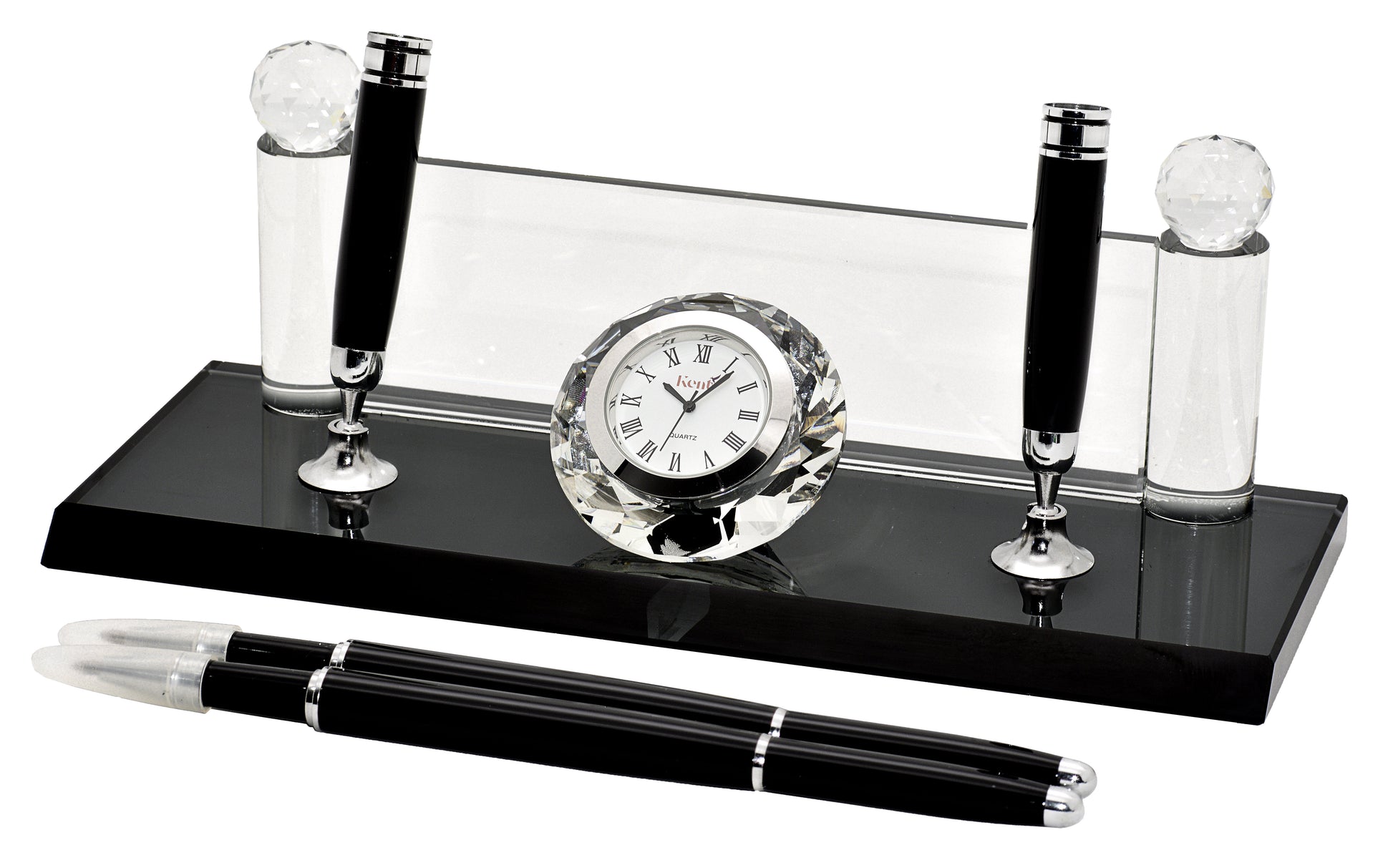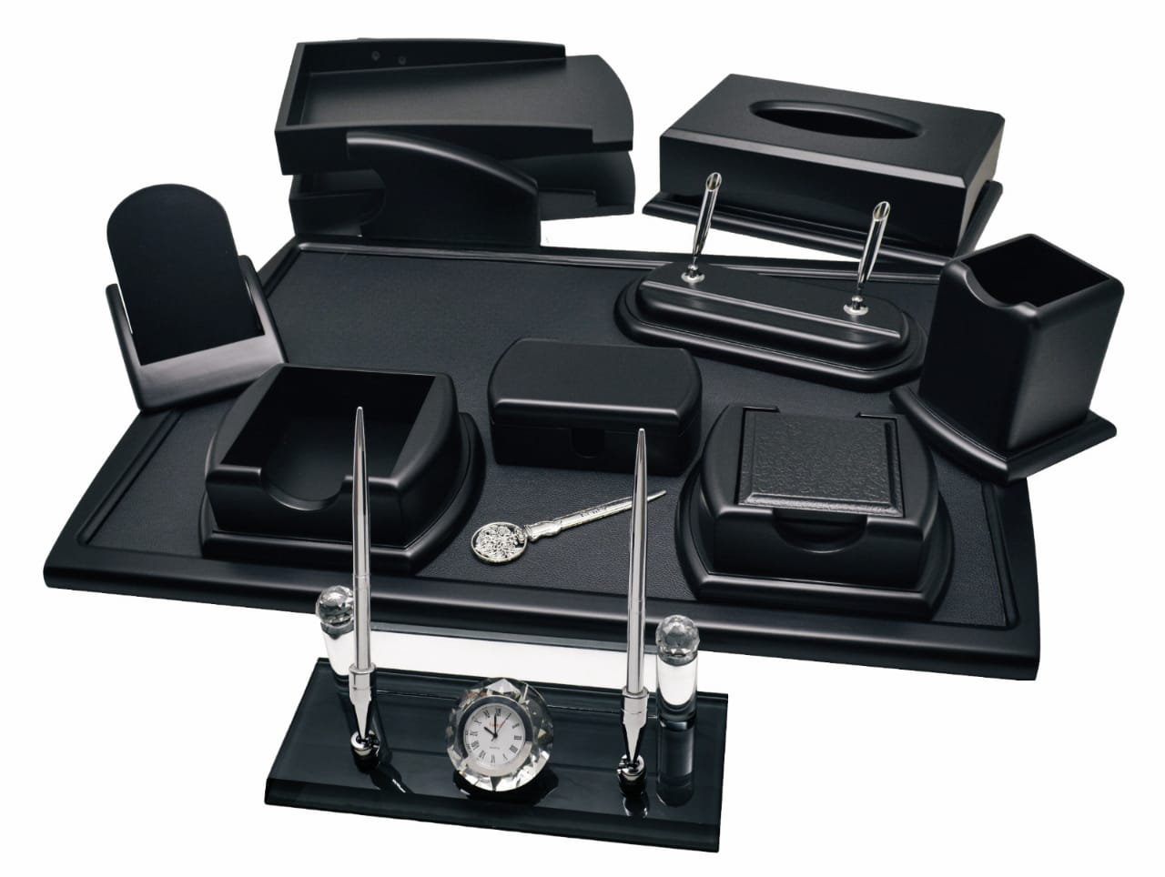 طقم مكتب لييندا (اسود) - 13 قطعة مع ستاند كريستال