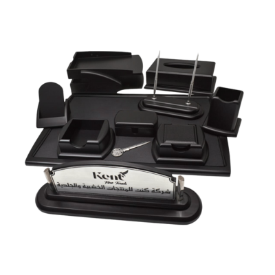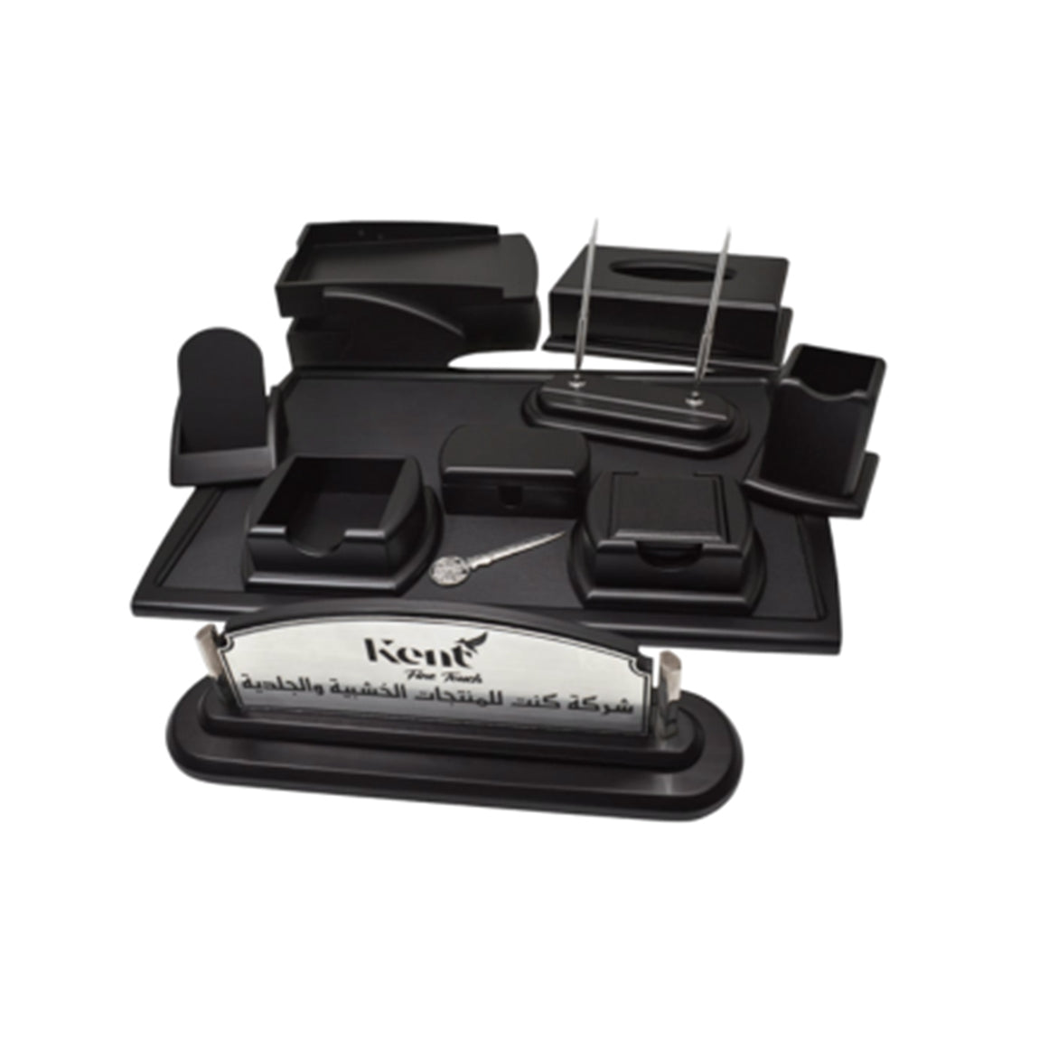 طقم مكتب لييندا (أسود) - 13 قطعة مع حامل اسم/نيم تاج