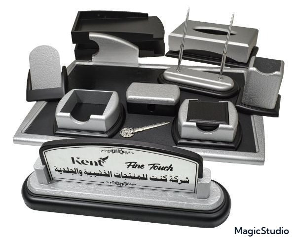 طقم مكتب لييندا (فضي) - 13 قطعة مع حامل اسم/نيم تاج