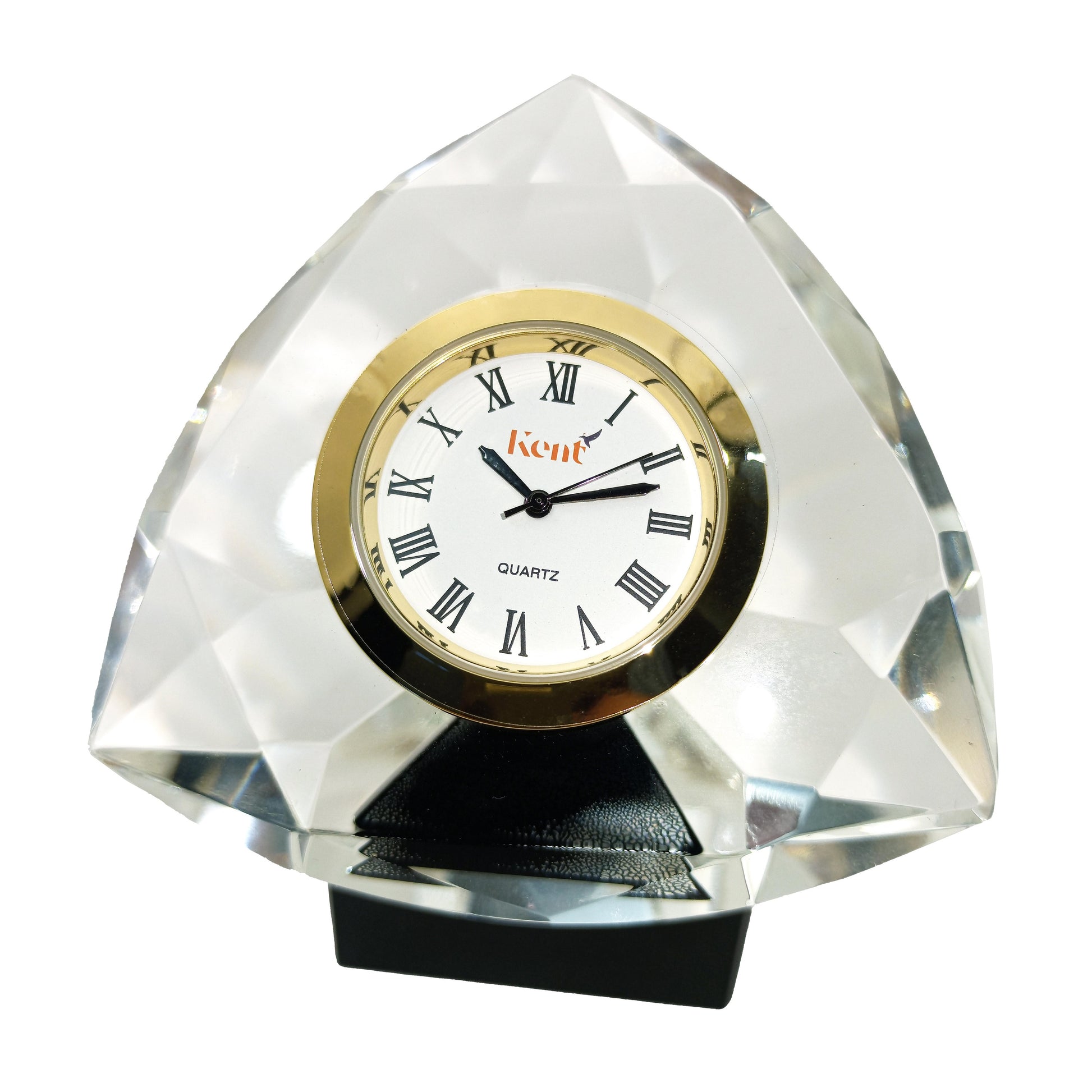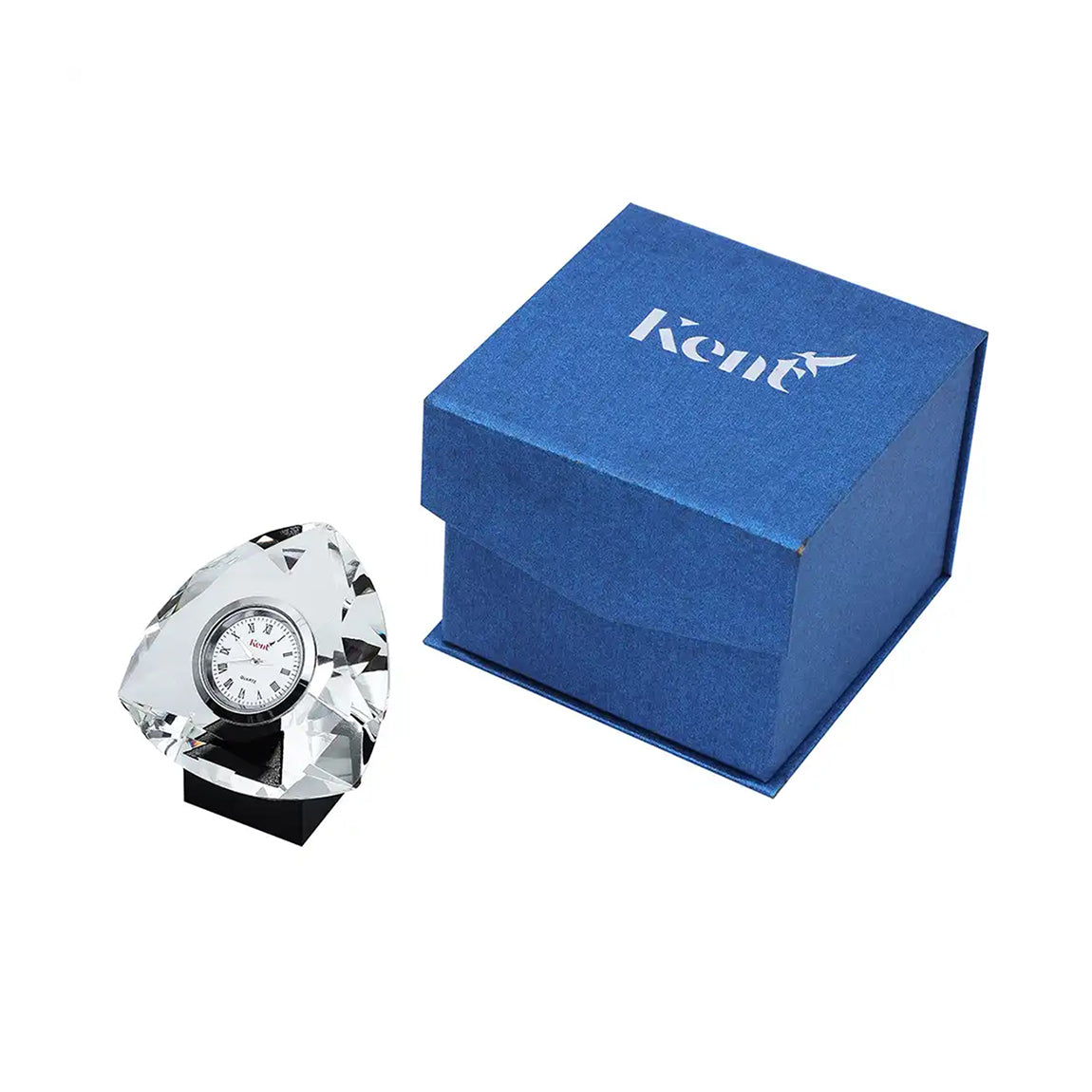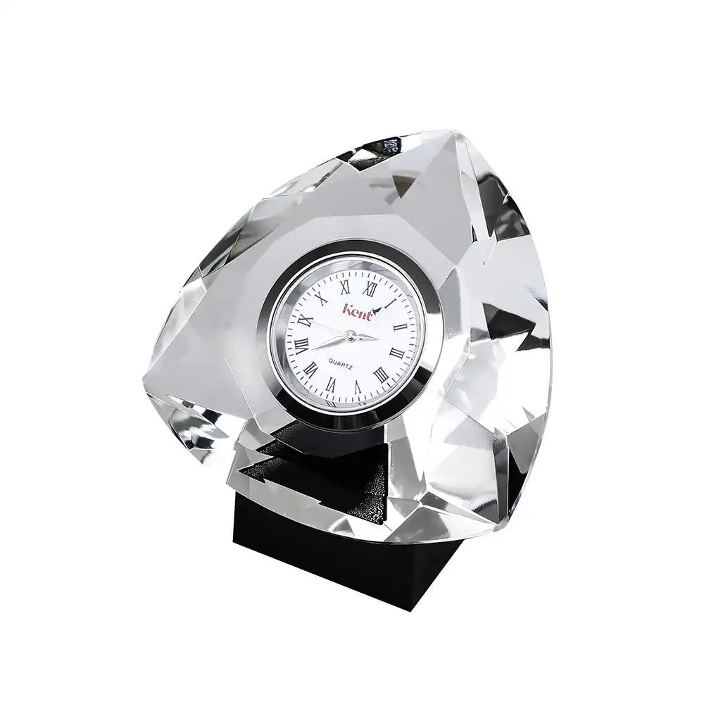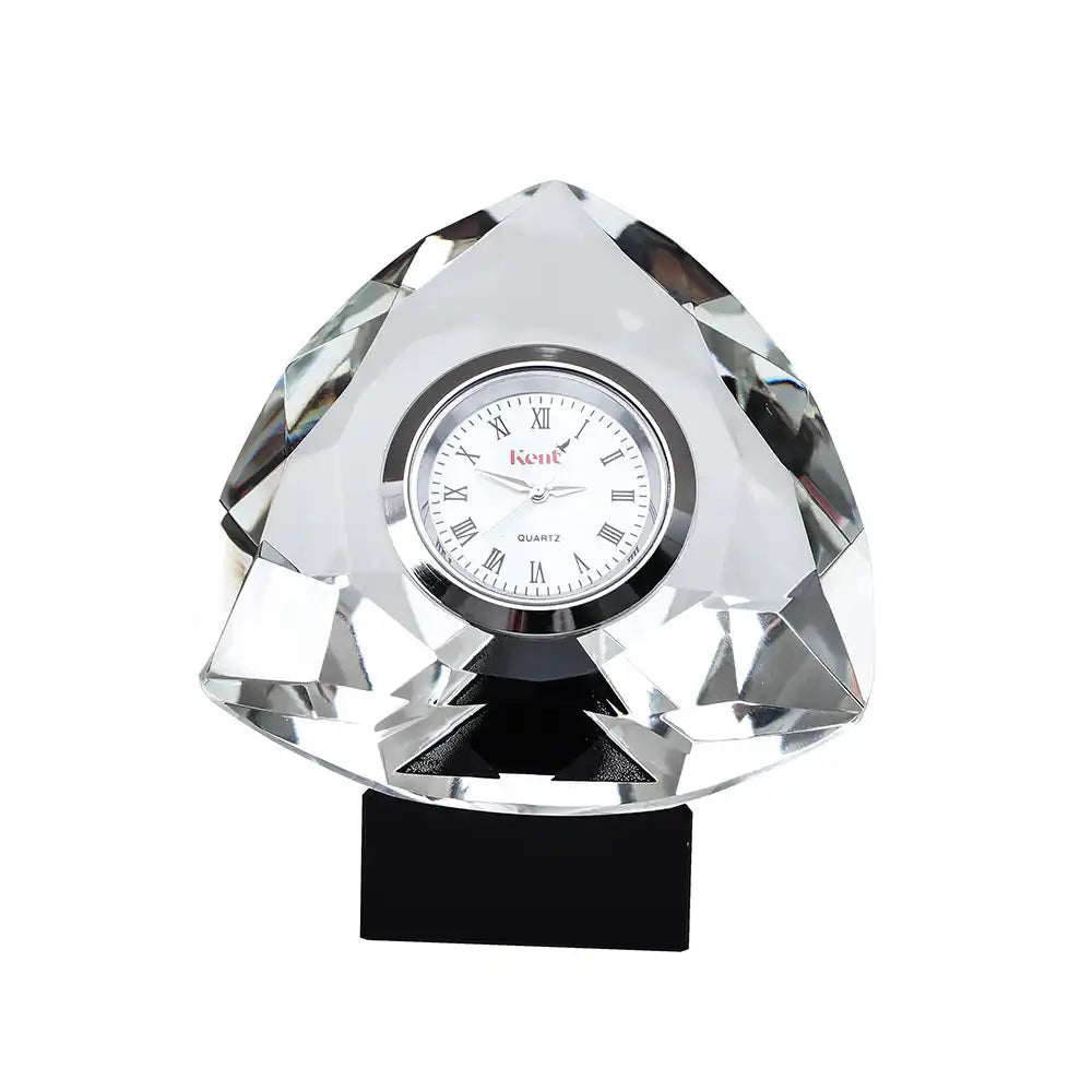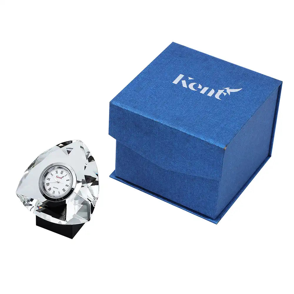 حيث ان القطعة الخاصة بنا مصنعة من الكريستال النقي مزودة بساعة معدنية ماركة كينت لضمان الفخامة والعملية لمكتبكم .