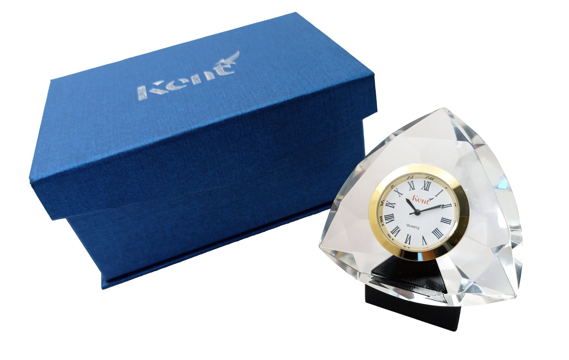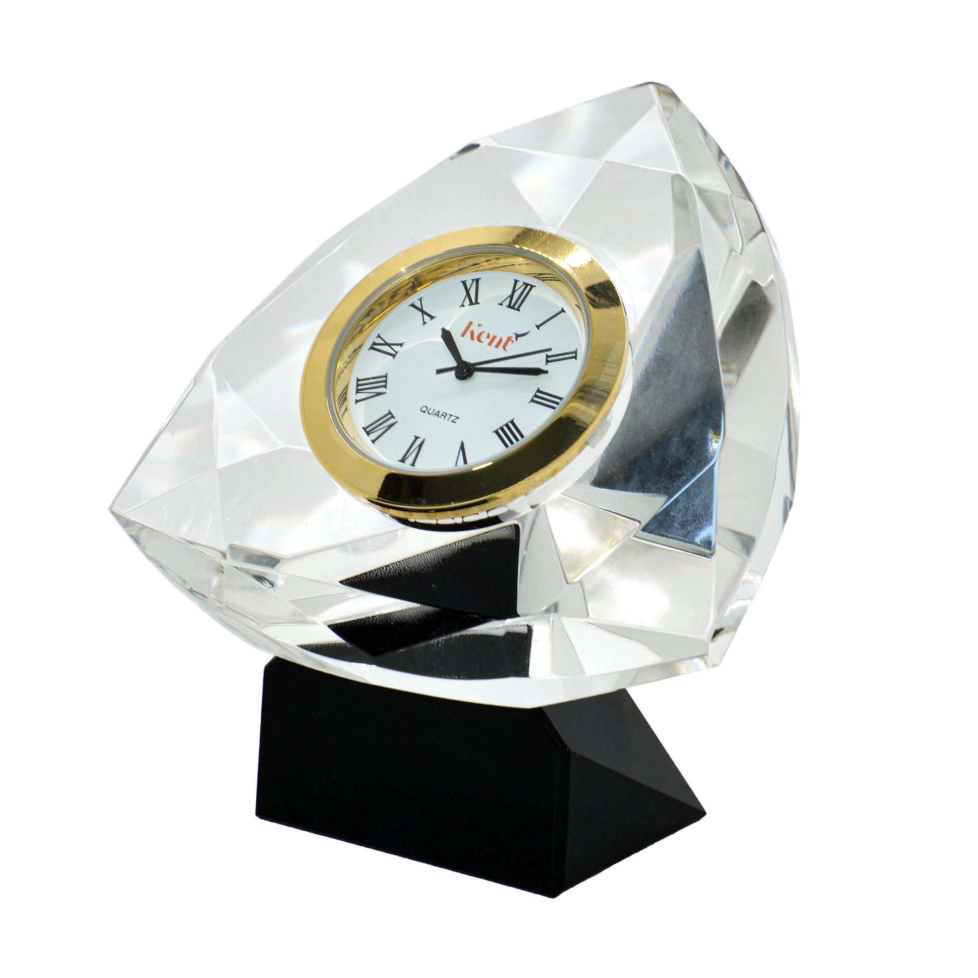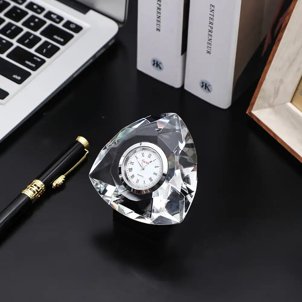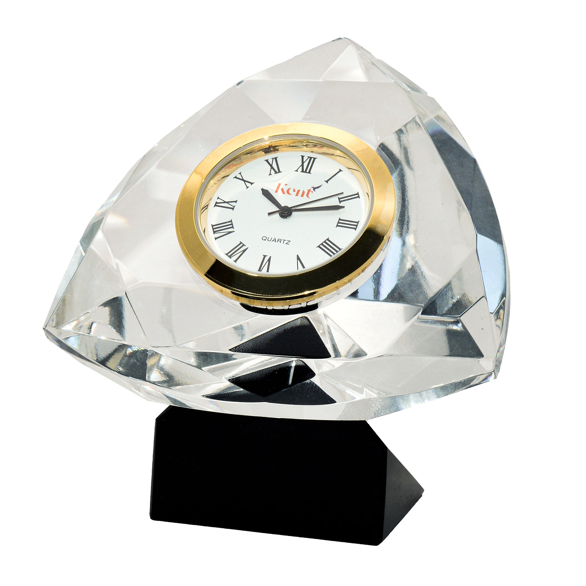 حيث ان القطعة الخاصة بنا مصنعة من الكريستال النقي مزودة بساعة معدنية ماركة كينت لضمان الفخامة والعملية لمكتبكم .