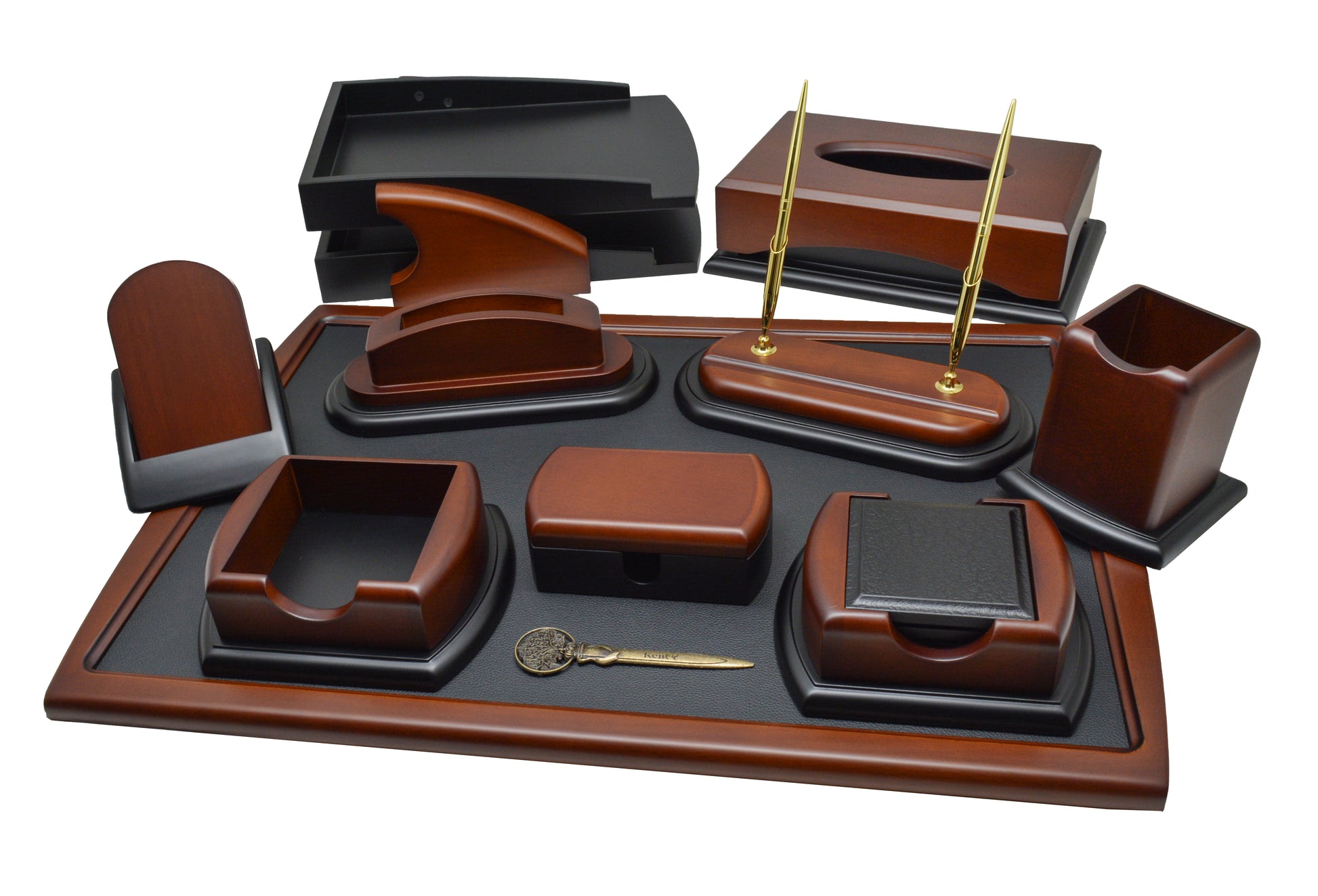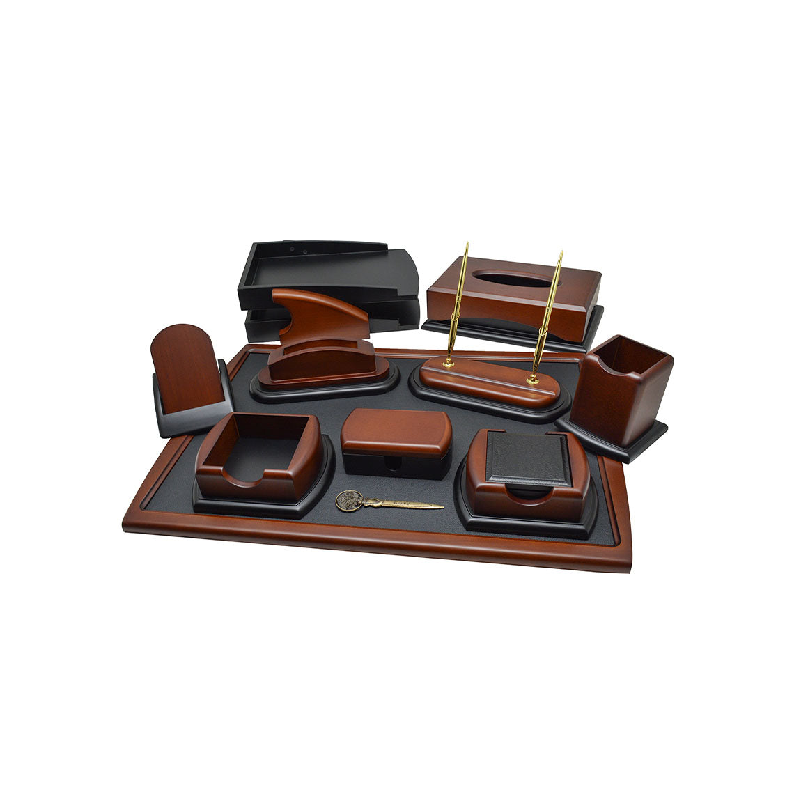 طقم مكتب لييندا (بني) - 12قطعة بالقلمين